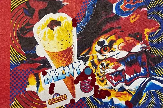 A centrepiece of the exhibition is Dad’s Ice Cream Van (2022), which will be displayed outdoors, adorned with Burman’s iconic neon tiger—a symbol of both nostalgia and defiance. The ice cream business, central to Burman’s personal history, reappears throughout her career, symbolizing continuity and resistance. Her early printmaking, which began in the 1960s, is revisited in new works that use her body as a canvas, addressing beauty standards, ageism, and the representation of South Asian women.