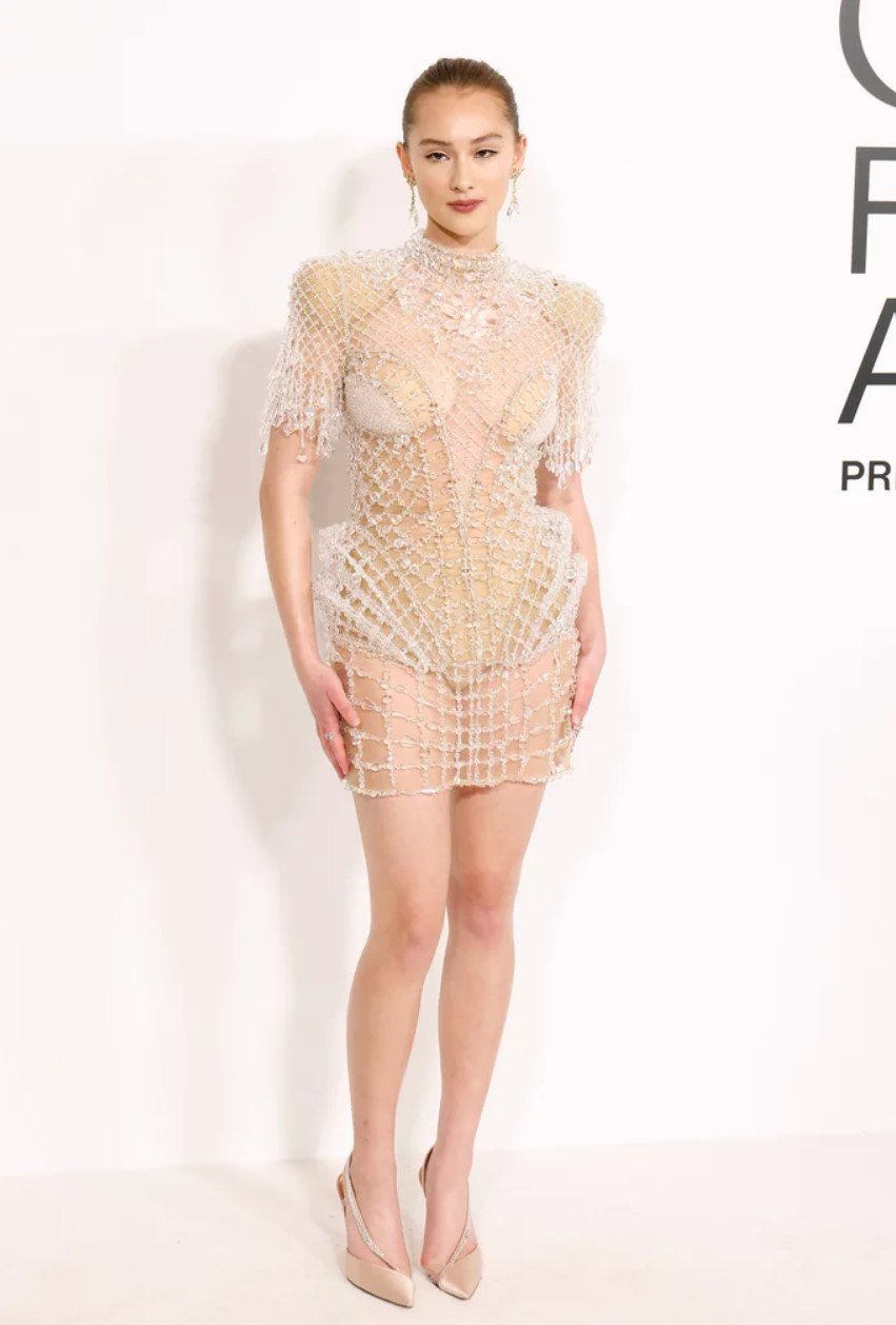 Lola Tung arrived in a stunning Balmain dress which beautifully accentuated her waist and would actually be considered fairly minimal for the brand.