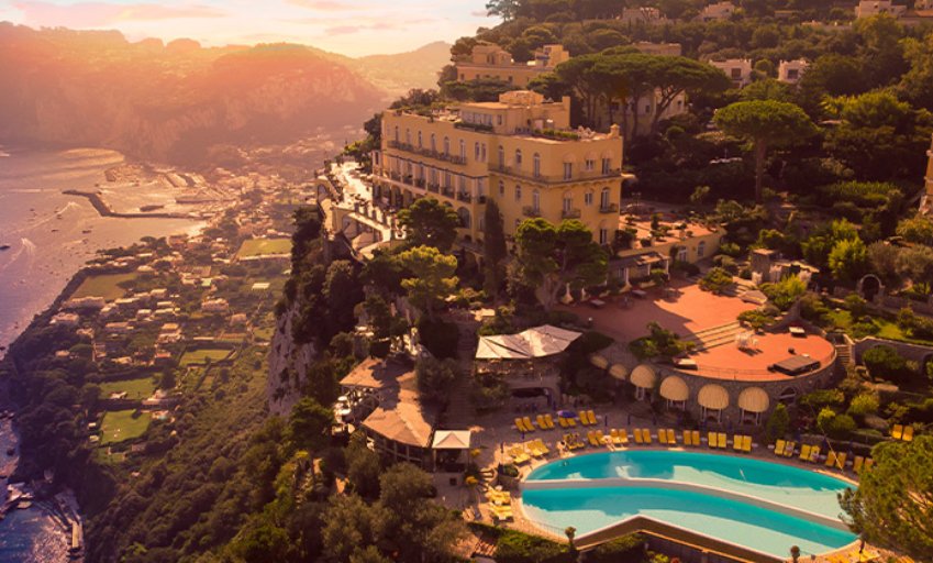 Perched dramatically on a cliff 300 metres above sea level, Caesar Augustus is where you go when you want views that make you question your entire life back home. It’s family-run, so while it’s grand, it’s also incredibly warm owner Paolo and his son might just greet you personally. Rooms in the main villa are the prize (yes, even the bathrooms come with a view). The chef cooks with ingredients picked straight from the hotel’s garden, and if you’re lucky you’ll be roped into a cooking class or a fish-market run. It’s all very wholesome in a “pinch-me-I’m-on-Capri” kind of way.
