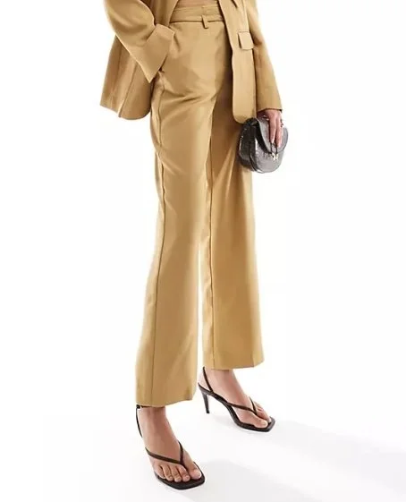 ASOS DESIGN tailored trouser with raw edge details and belt in tan