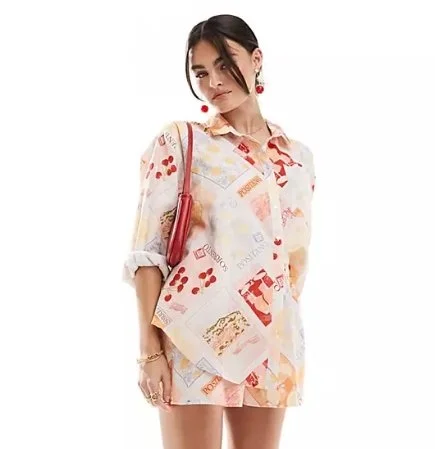 Miss Selfridge linen blend co-ord in postcard print