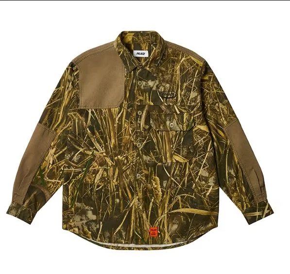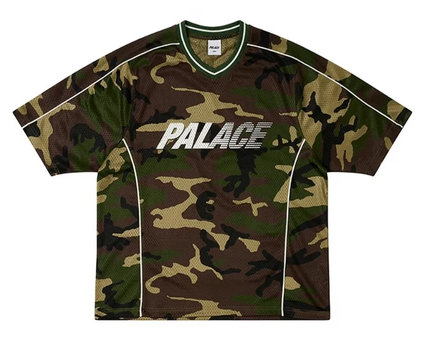 In contrast to the bold outerwear and fleece options, the knitwear collection is more restrained. Full-zip knits nod to Porsche with logo-flipped crests and wordmarks, while heart-and-star adorned sweaters offer a playful touch. The “Palace Guard” theme continues with tartan and brightly hued sweaters. Long-sleeve button-ups include camo shooter shirts with recoil-reducing pads, colourful flannels, and elegant oxfords. Short-sleeve button-ups range from whimsical prints to solid colour schemes, providing versatile options for layering.