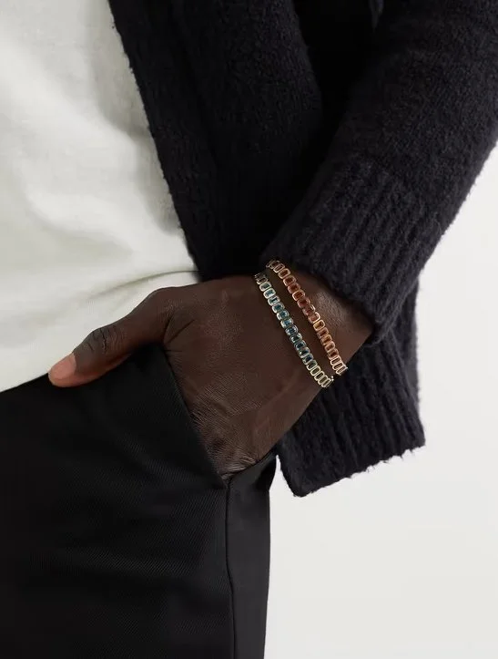Miansai has carved a niche with its minimalist, nautical-inspired men's jewellery designs. Offering a range of bracelets, necklaces, and rings, Miansai blends timeless aesthetics with modern sophistication. The brand's focus on high-quality materials and craftsmanship, while maintaining an accessible price range, makes it a favorite among fashion-forward men.