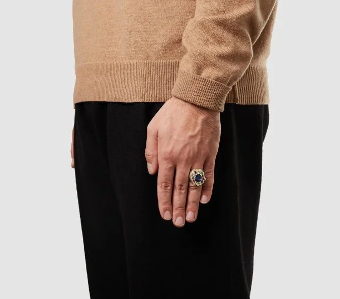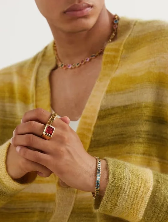 Men’s jewellery is finally having its moment, steering away from the occasional cufflink or wristwatch and embracing a new direction. Inspired by runway fashion and pop culture, a new wave of designers is transforming the general consumer space. Easy-access fashion platforms like ASOS have normalized wearing statement jewellery pieces for men, making it more about expression than practicality. These designers are turning to the avant-garde, encouraging us to shake up our wardrobes and rethink how we style ourselves.