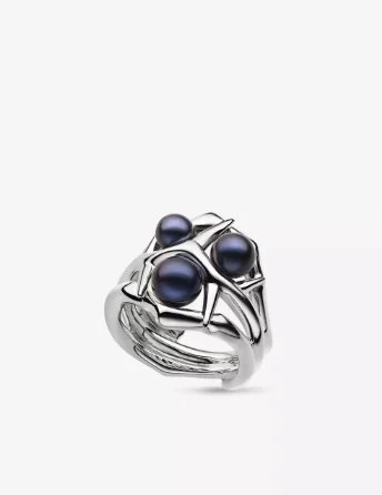 Blackthorn double branch sterling-silver and black pearl ring
