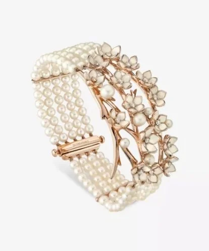 Cherry Blossom rose gold-plated vermeil, diamond and freshwater pearl bracelet