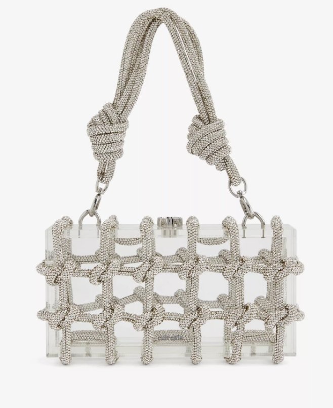The CULT GAIA Bess rhinestone-embellished acrylic shoulder bag dazzles with its sparkling rhinestones and sleek acrylic construction, offering a glamorous and eye-catching addition to any outfit.