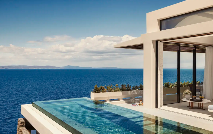 Perched on the cliffs of Crete, Acro Suites is the kind of place you see all over Instagram but wish you could experience in real life. Carved directly into the rock, each suite feels like a private sanctuary with sweeping views of the Aegean Sea, your own plunge pool, and a calm so deep it almost becomes part of you. The design is effortlessly beautiful — crisp white walls, natural stone, and touches that feel inspired by classic Greek architecture, making every corner a perfect photo moment.