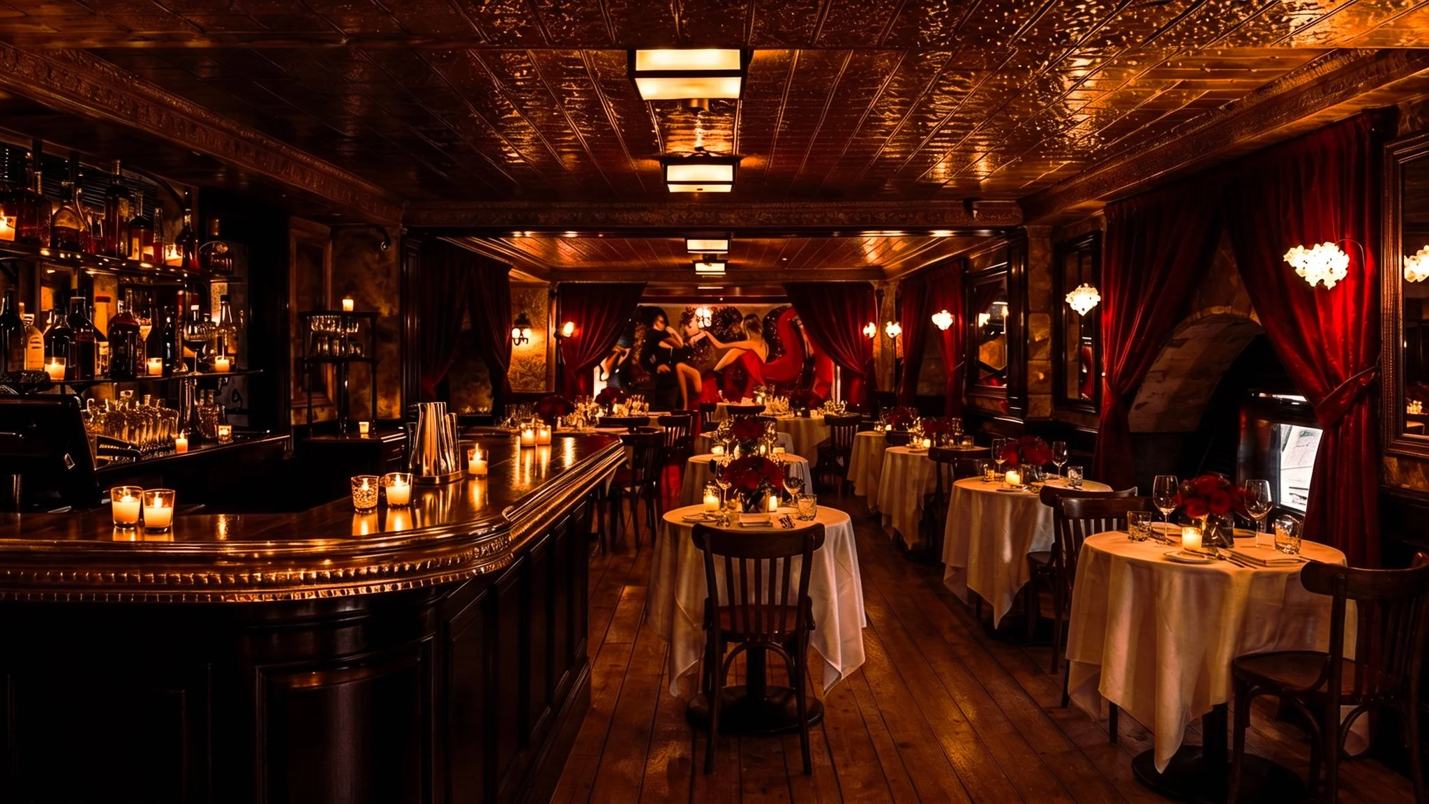 Step into 58th Street London for a Valentine’s evening that feels like a glamorous journey back to the 1930s. The Lost Estate’s intimate venue captures the spirit of a New York speakeasy, with every detail from the doorman to the waitstaff in character, while a live band serenades diners throughout the meal. Dressing up in glitz and sparkle only adds to the fun, making it a night where romance meets theatrical flair in equal measure.