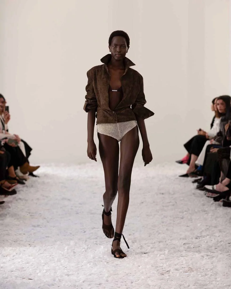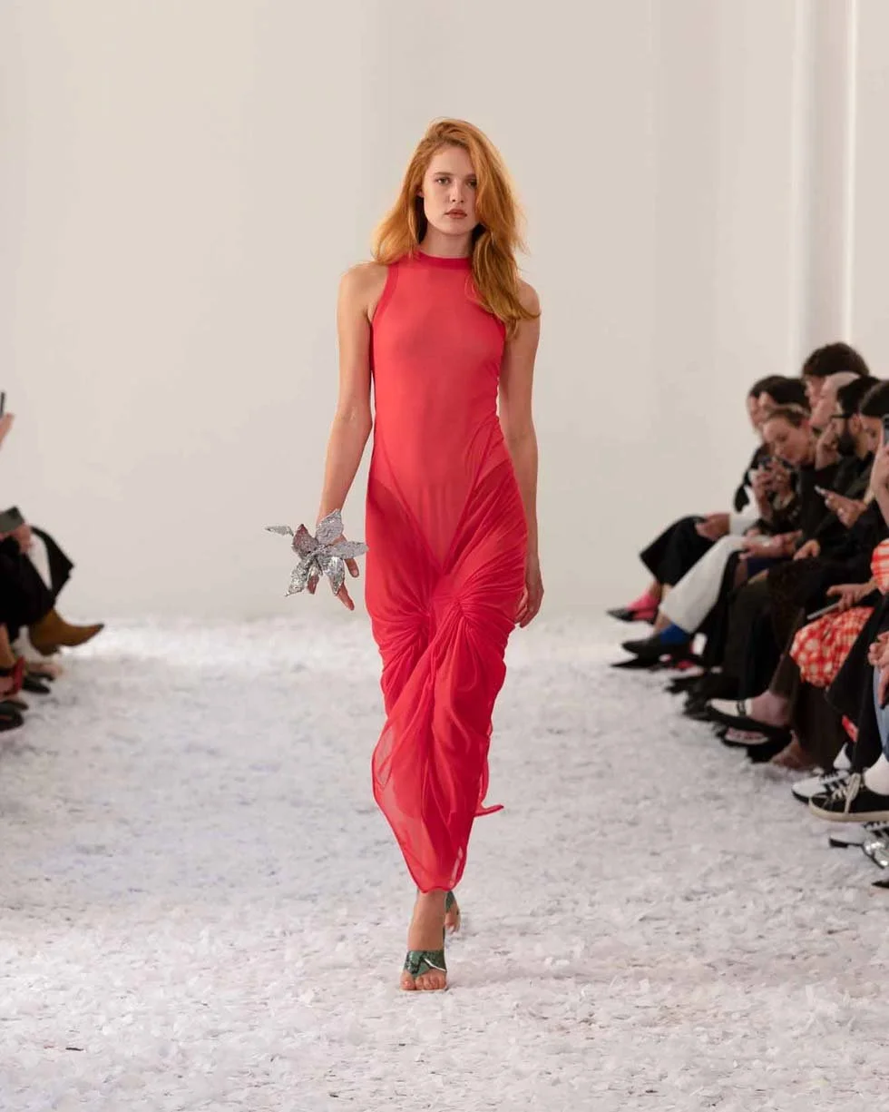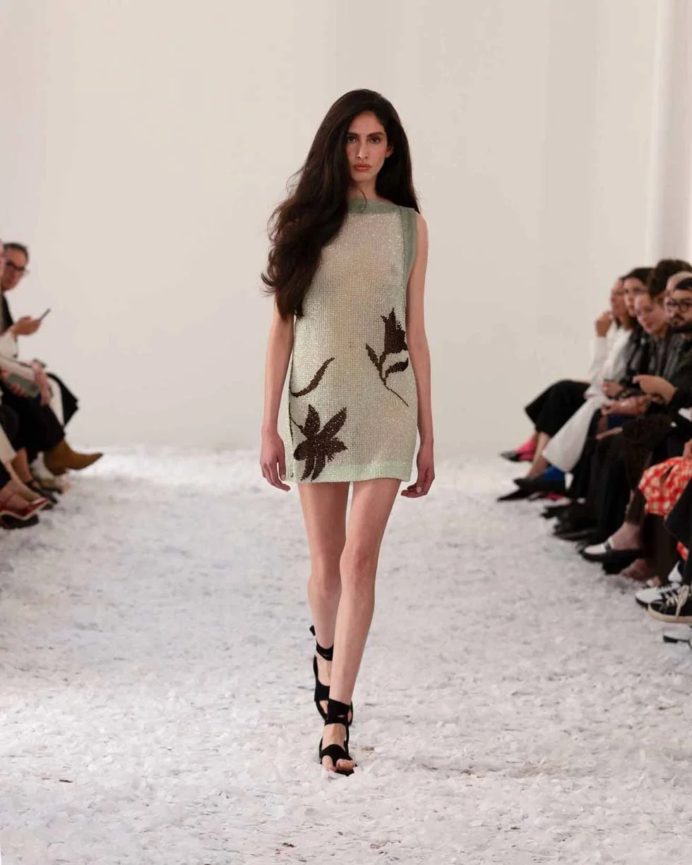 The collection, though vibrant and playful, carried an undercurrent of complexity. Drawing inspiration from Pedro Almodóvar’s The Skin I Live In, Capaldo’s use of colour and mood channelled the film’s haunting beauty, melding darkness and sensuality. From the waxed raffia techniques to the exquisite craftsmanship of hand-crocheted beads, 16Arlington’s SS25 line-up reflected Capaldo’s vision of a woman illuminated by the most magical light—at dusk, at dawn, always confident in her skin.