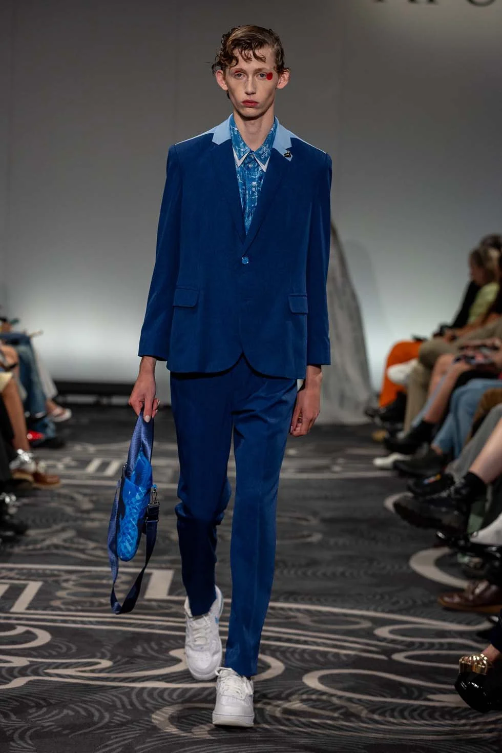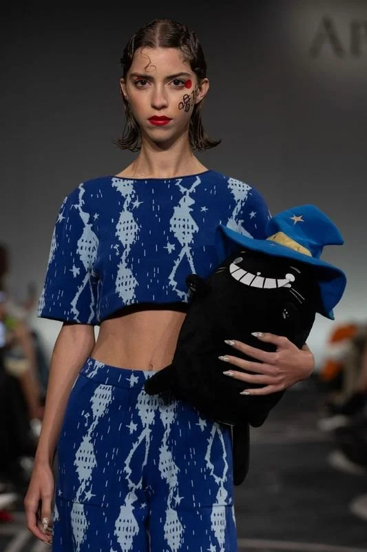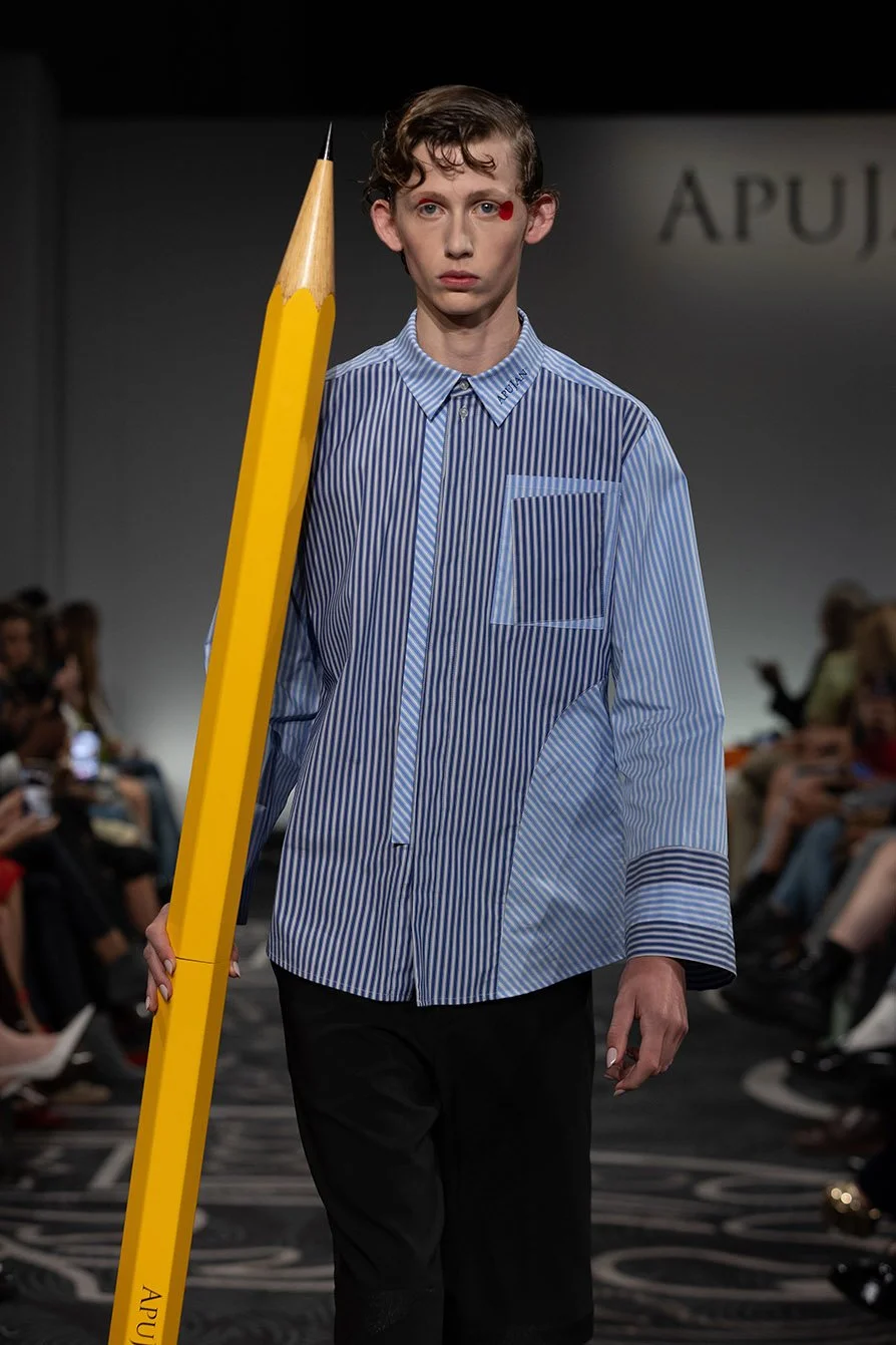 Every look on the runway felt like a magician pulling a new surprise from their hat—archetypes appeared one after another: a student, chess pieces, clowns, a mad hatter, even a rabbit. Yet none of it veered into costume territory. Instead, Apujan’s brilliance lies in his ability to take these symbols of fantasy and elevate them into high fashion, each piece telling its own story while contributing to the larger narrative.