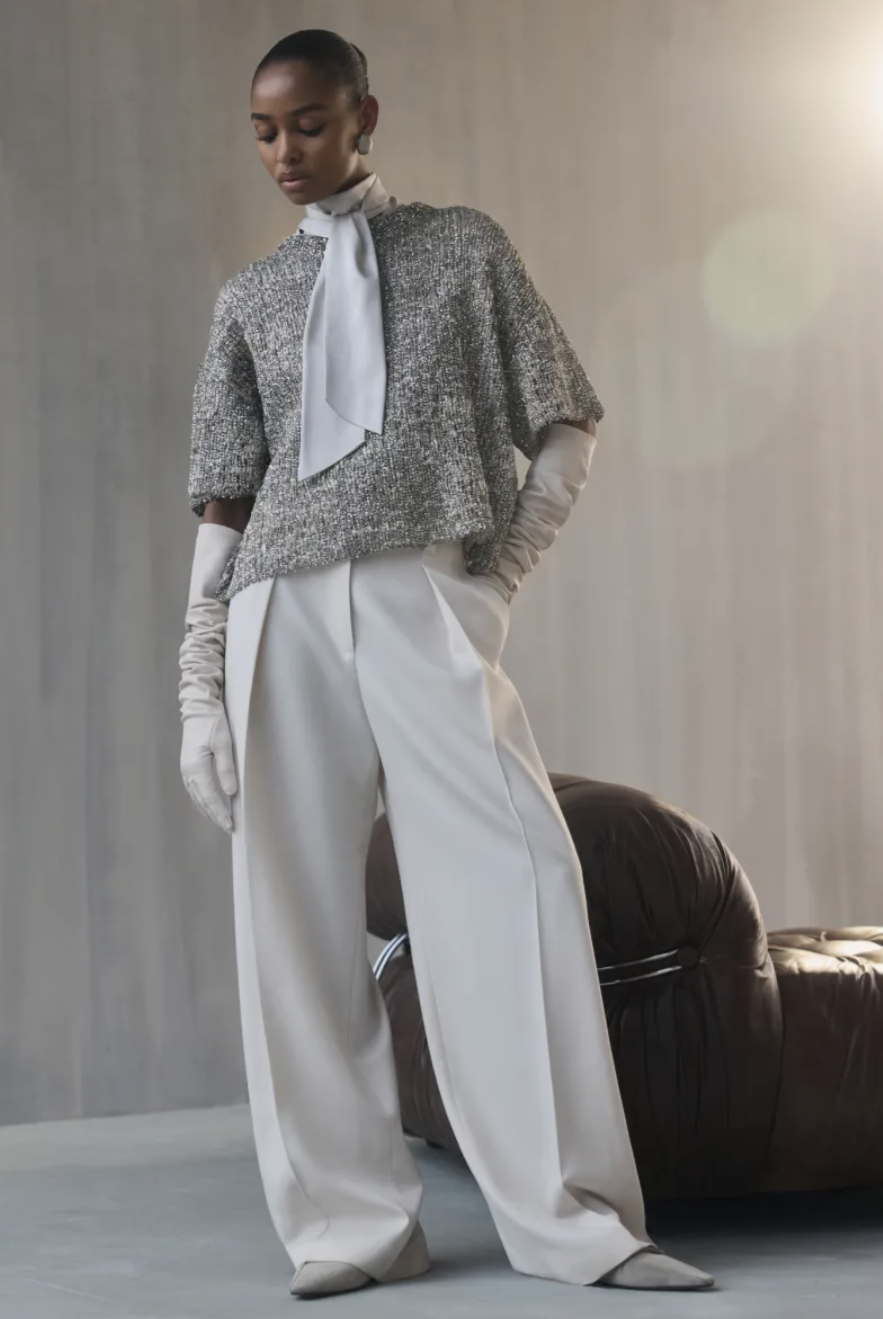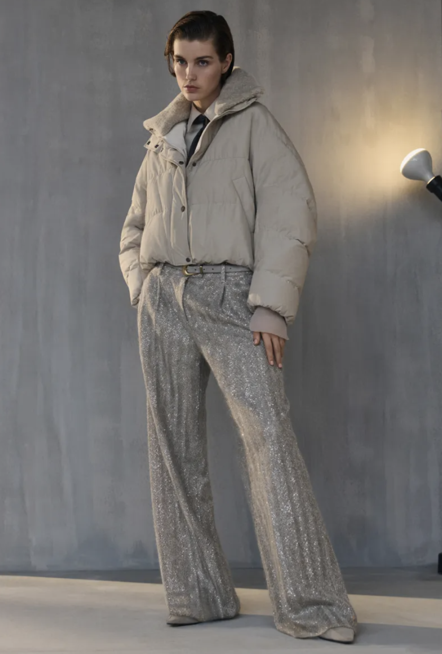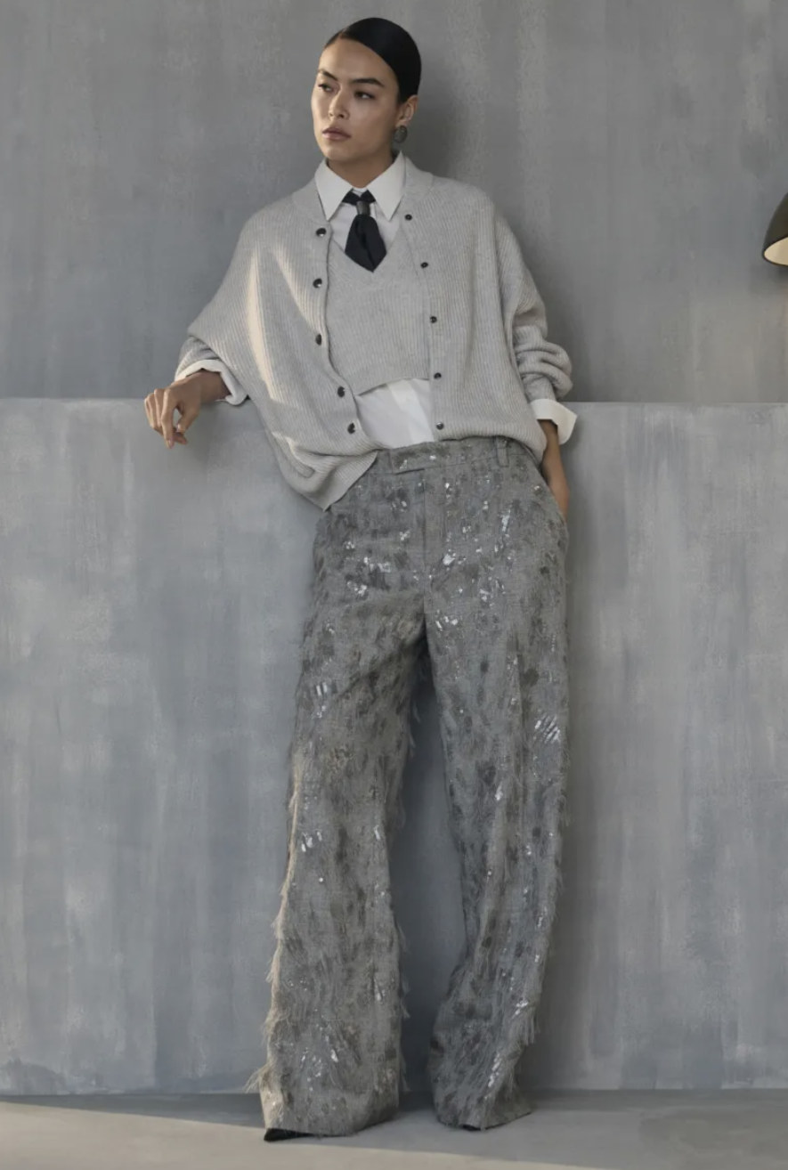 What grounded the collection was its sense of humanity. The shapes were loose and fluid, an acknowledgment that elegance today lives in ease rather than rigidity. Cucinelli’s business continues to thrive, and his clothes mirror that optimism. They are rooted in craft, guided by familiarity, and elevated by care. “Country couture” might sound like an oxymoron, but in Cucinelli’s hands, it felt like the perfect expression of where luxury wants to go next, toward pieces that are handmade, heartfelt, and quietly confident.