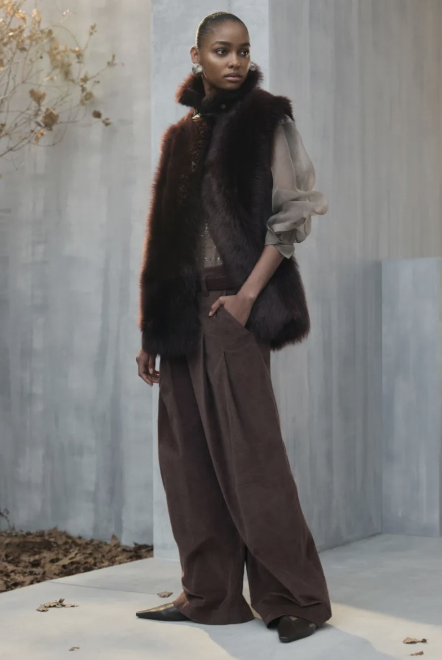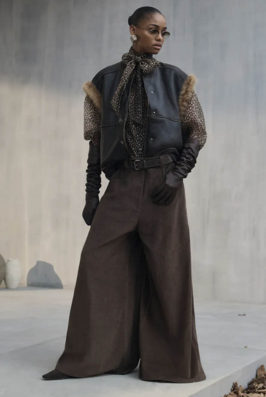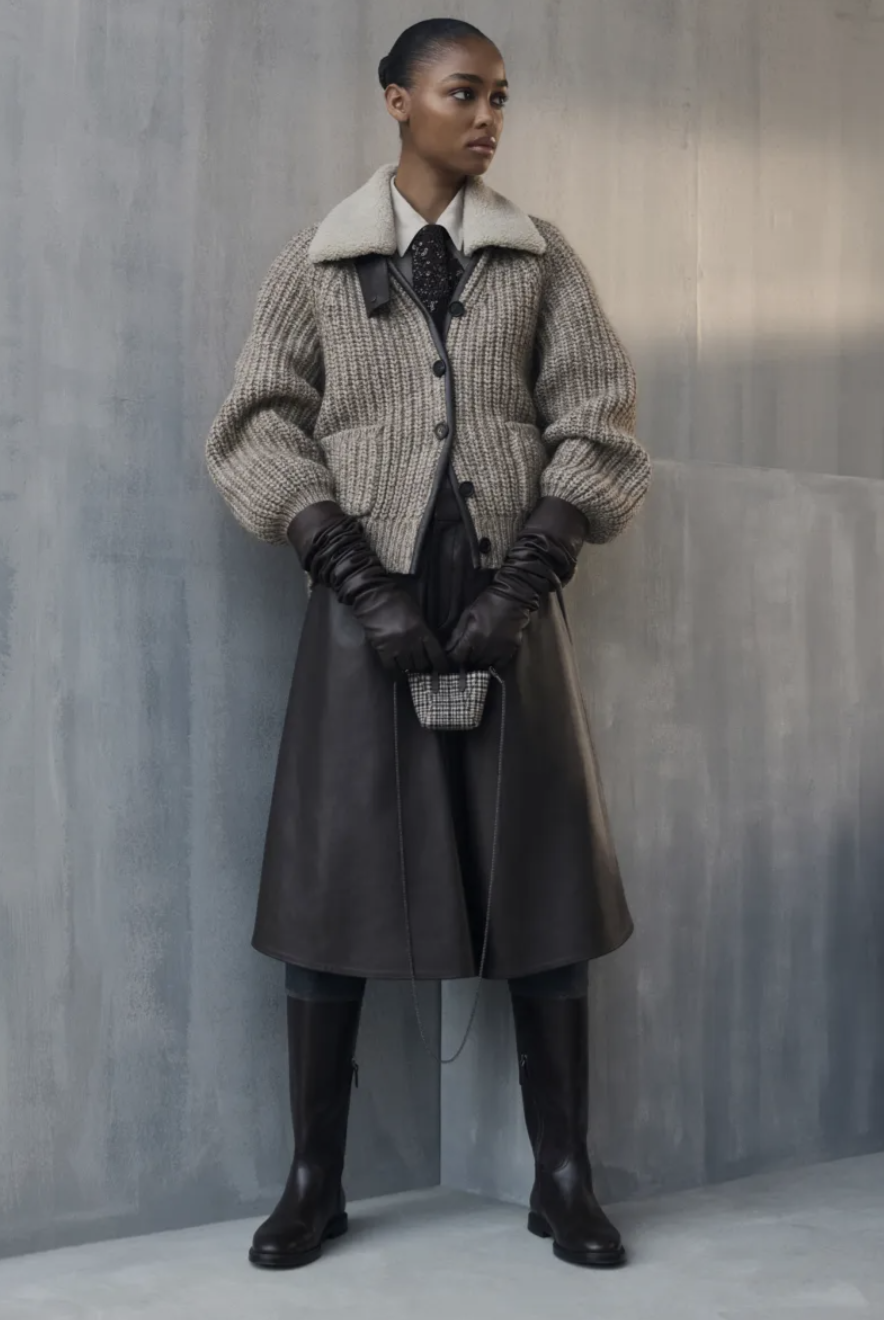 Brunello Cucinelli’s fall collection began with a declaration: “It’s not the time for minimalism or anonymous looks.” True to his word, the presentation was anything but restrained. Cucinelli likened the collection to the pages of a book, where the author’s style is unmistakable from the prose. His signatures were all there, hand-finished knits, a dialogue between masculine and feminine codes, and fabrics that spoke the language of quiet luxury, but this season they were amplified, imbued with what he called a spirit of “country couture.”