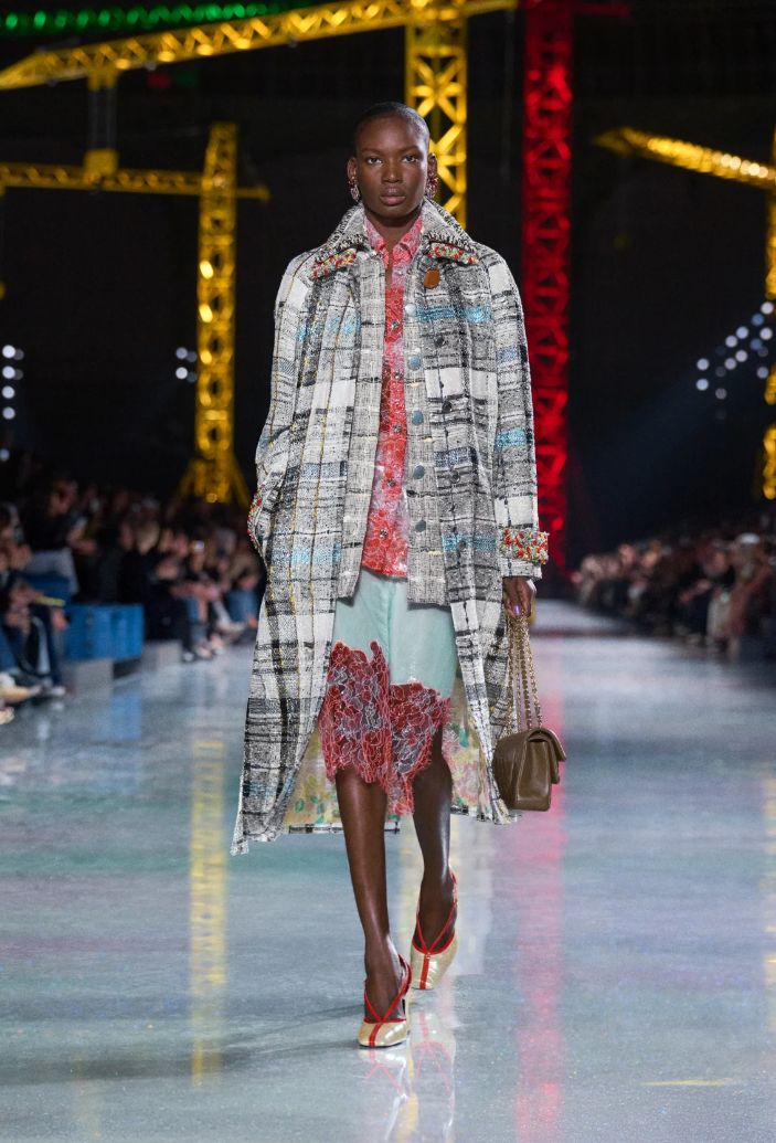 The Chanel Fall 2026 collection drew directly on the philosophy of founder Gabrielle Chanel. Backstage, Blazy quoted her famous line comparing fashion to both caterpillars and butterflies, garments designed for the everyday and garments made for transformation. That idea shaped the Chanel Fall Winter 2026 collection, which moved fluidly between practical daywear and dramatic evening looks. Built on the foundation of the classic Chanel suit, the runway explored layering, texture and material contrast. Tweed remained central, but the Chanel Fall 2026 collection also introduced silk, lace, feathers and metallic details that expanded the house’s traditional codes.