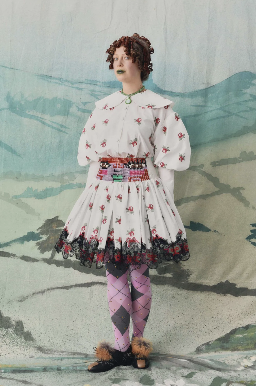 This season also marked the launch of Chopova Lowena Feelings, an ongoing intimates line featuring embroidered poetry that celebrates “primal emotions from joy to fear.” It was a softer counterpoint to the brand’s maximalist energy, expanding their world into something intimate and accessible. Even without a live show, the collection radiated community and playfulness, underscoring the brand’s belief that fashion should be felt, not just worn. From tartan-clad fairways to Regency ballrooms, Chopova Lowena continues to prove that British eccentricity remains one of the most vital forces in fashion today.
