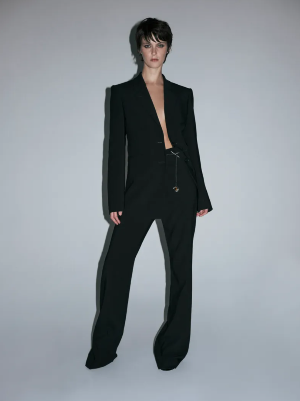 For Fall 2026, Christopher Esber turned to an unlikely cinematic reference: the unsettling erotic thriller Crash, directed by David Cronenberg. The film’s fixation on the relationship between the body, machinery and desire led designer Christopher Esber into a broader exploration of the connection between humans and technology. That tension shaped the Christopher Esber Fall 2026 collection, where ideas of protection, motion and physical closeness translated into enveloping silhouettes and tactile materials.