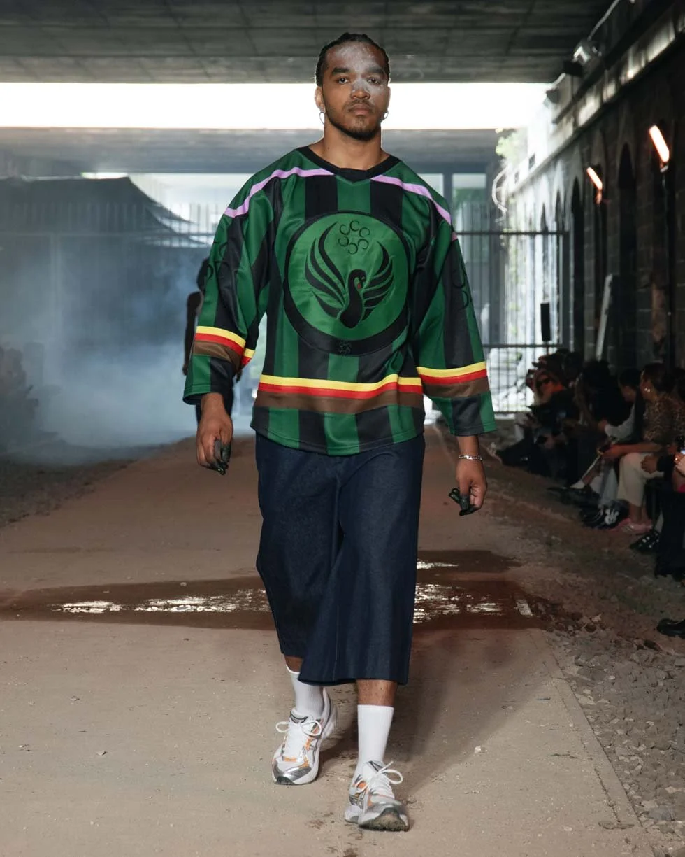 The presentation showcased utilitarian workwear with exaggerated oversized silhouettes, English embroidery and references to the pan-African spirit through a queer lens. The designer said: