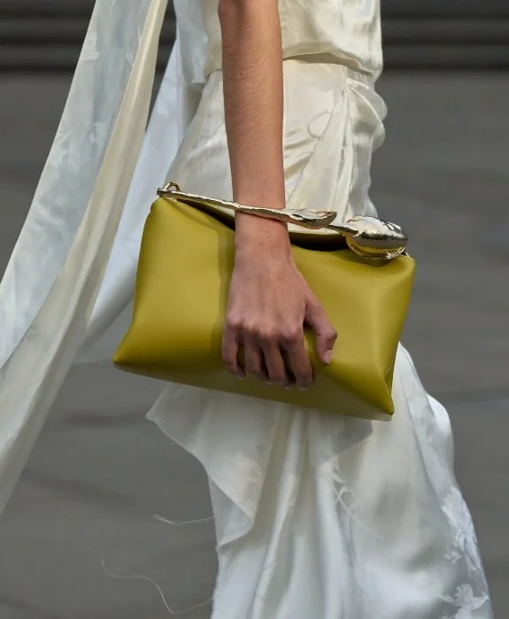 Erdem’s storytelling continued in the accessories, with the debut of the Bloom Bag, a sculptural piece that married hard and soft elements. The hammered metal floral handle contrasted with the supple leather body, mirroring the collection's overall interplay of strength and delicacy. As models carried the Bloom Bag close to their bodies—clutching it like a precious token of individuality—the collection whispered its message: Fashion is not just about beauty, but about breaking boundaries. Through its homage to queer history, gender fluidity, and love, Erdem’s SS25 collection offered a poignant reminder that self-expression transcends societal norms, celebrating the courage to live authentically.