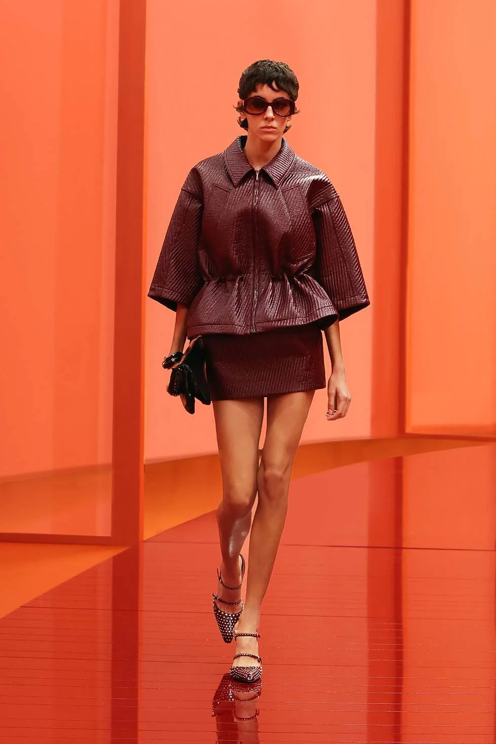 Throughout the show, De Sarno stayed true to his concept of “casual grandeur”—luxury that feels effortless yet polished. From glossy leather jackets and mini-shorts to shimmering evening coats with matching beaded bags, the collection captured the tension between Gucci’s iconic past and a modern, wearable future. With just over a year at Gucci, De Sarno is clearly carving out a distinct path for the brand, one that is as timeless as it is forward-thinking.