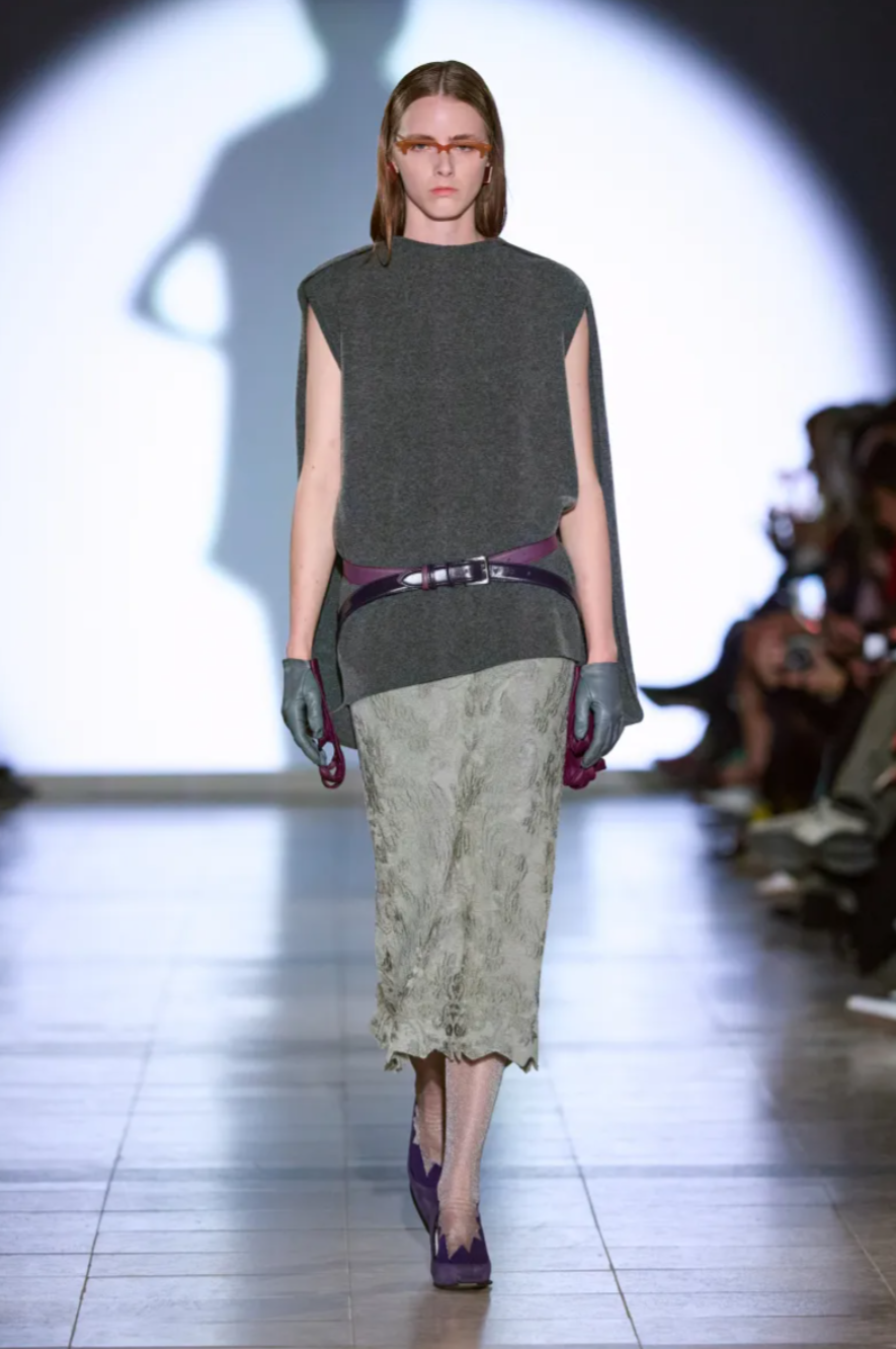 For Julie Kegels, fashion is not simply about form — it’s about perception. Her Fall 2026 collection, staged in Antwerp to the dissonant sound of plucked violins, was a meditation on how we construct and control our image in an age of constant visibility. Titled Face Value, the show explored what happens when we strip back the performance. Models moved slowly, almost ritualistically, forcing the audience to look — really look — at the garments themselves. It was a deliberate rejection of the social-media spectacle, the kind of show that reminds you fashion can still ask questions rather than simply trend.