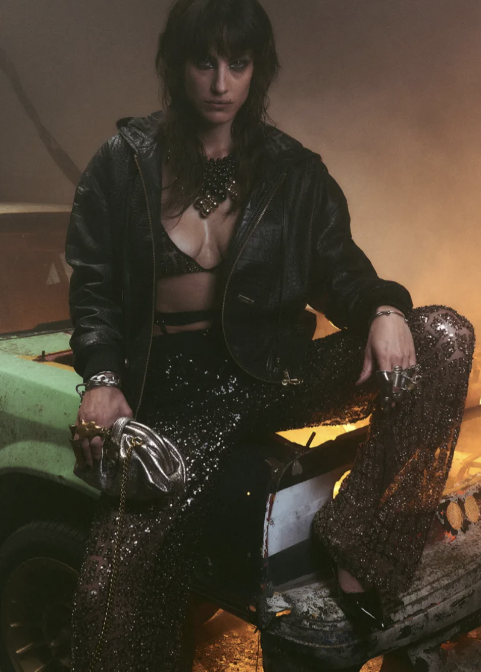 Daniele Lombardo took a darker turn for Just Cavalli Fall 2026, pushing the brand’s eccentric mix of glam, streetwear, and sport into bolder, more rebellious territory. The collection carried an undercurrent of post-punk energy that magnified the irreverent, youth-driven attitude Lombardo has been nurturing for the past two years. It felt raw, expressive, and confident, a deliberate risk in an industry that often prizes safety. “Creative directors are very afraid of making mistakes today,” Lombardo said backstage. “But any art can only point in one direction, which is to take risks. And this collection is a risk.”