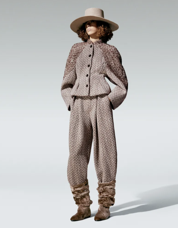 At Milan Fashion Week, Loro Piana presented Nomadic Reverie, a collection that unfolded like a cinematic journey through landscapes glimpsed from a train window. The concept captured the maison’s signature balance of luxury and restraint, its palette shifting fluidly from ocher and terracotta to soft beige, grey, and deep brown before deepening into forest green, anthracite, and midnight blue. As the imagined train moved through seasons, fabrics became the map of the voyage. Cashmere, Baby Cashmere, The Gift of Kings, Pecora Nera, and Merino wool met tweed, blending texture and tone in a study of quiet sophistication.