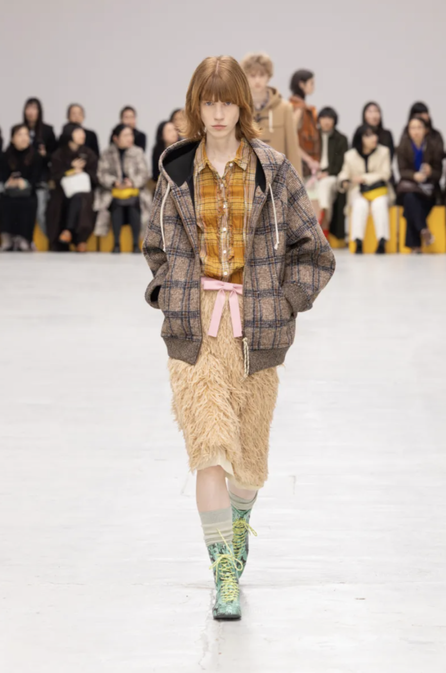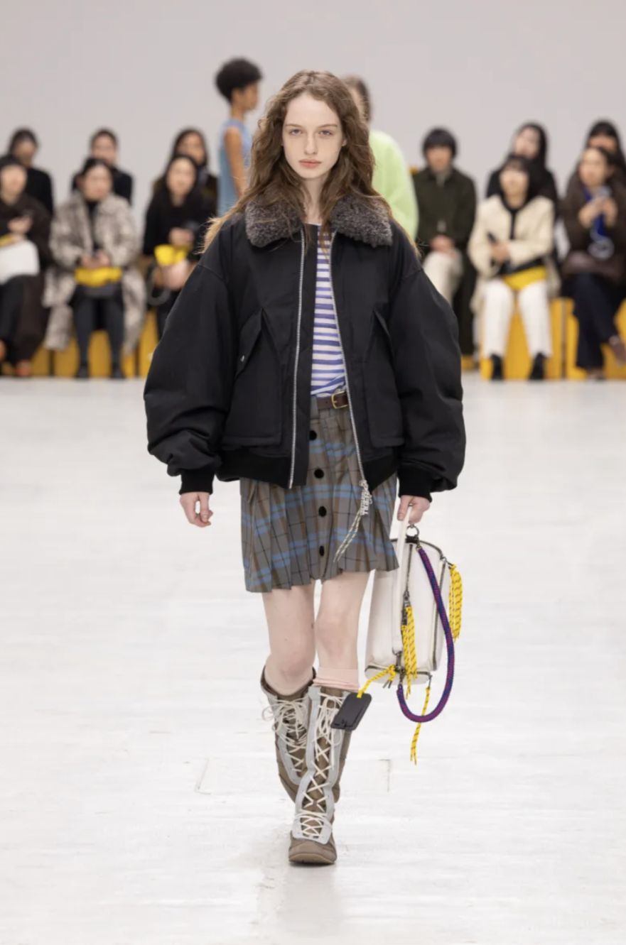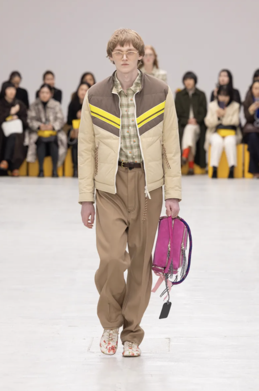 For Onitsuka Tiger Fall 2026, creative director Andrea Pompilio transformed the runway into a fictional campus alive with color, character, and confidence. The show took place during Milan Fashion Week and embodied what the designer called “The Aesthetics of Ma,” a Japanese concept that explores the meaningful space between things. Here, that space existed between sportswear and tailoring, utility and fantasy, function and charm. The result was a lively, youthful collection that blurred uniforms, streetwear, and romance into something unapologetically hybrid.