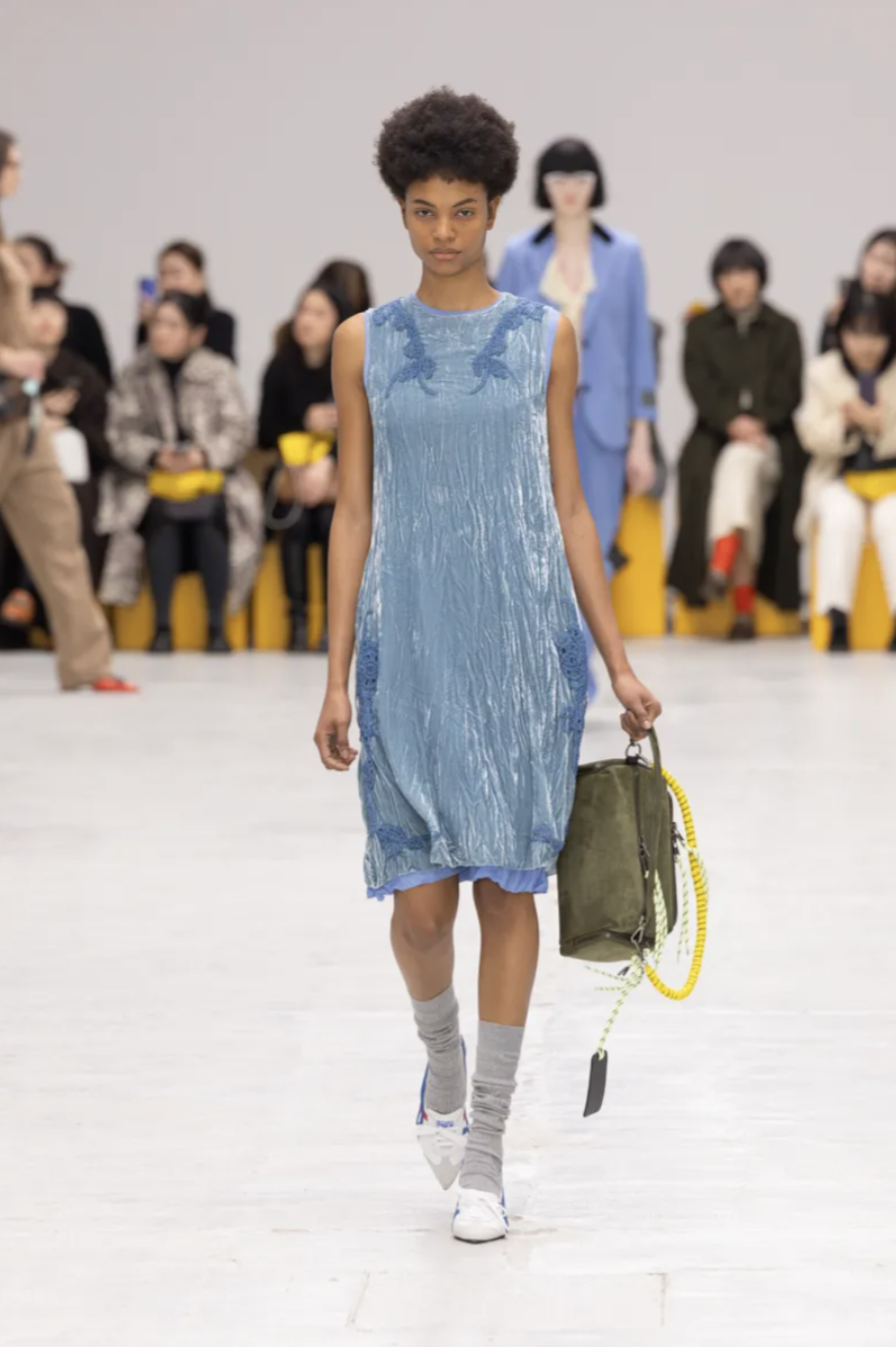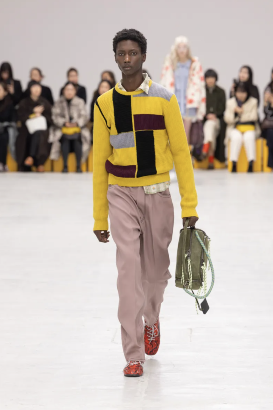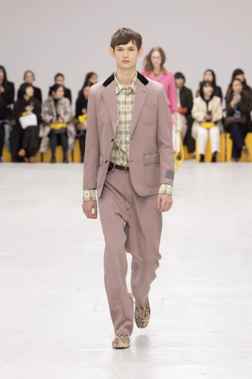 For Onitsuka Tiger Fall 2026, creative director Andrea Pompilio transformed the runway into a fictional campus alive with color, character, and confidence. The show took place during Milan Fashion Week and embodied what the designer called “The Aesthetics of Ma,” a Japanese concept that explores the meaningful space between things. Here, that space existed between sportswear and tailoring, utility and fantasy, function and charm. The result was a lively, youthful collection that blurred uniforms, streetwear, and romance into something unapologetically hybrid.