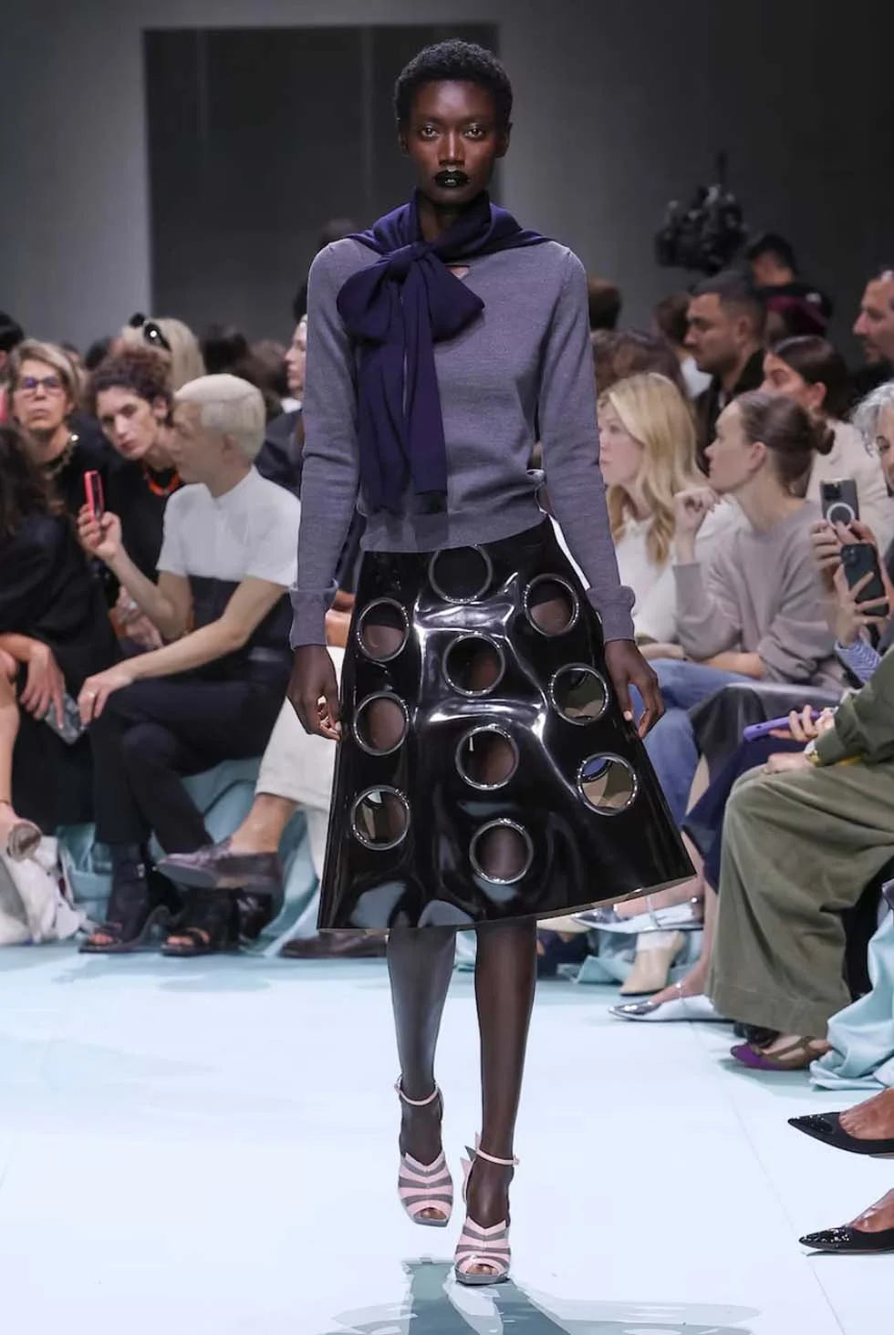 Prada’s SS25 collection reflects the intersection of structure and creativity in the digital age. The designs seem to challenge the increasingly rigid frameworks of modern life by embracing personal expression and unpredictability. Through vibrant colours, unexpected textures, and a mix of both nostalgic and contemporary references, Prada’s vision acknowledges the complexity of the current cultural moment while emphasizing the importance of staying true to individual identity.