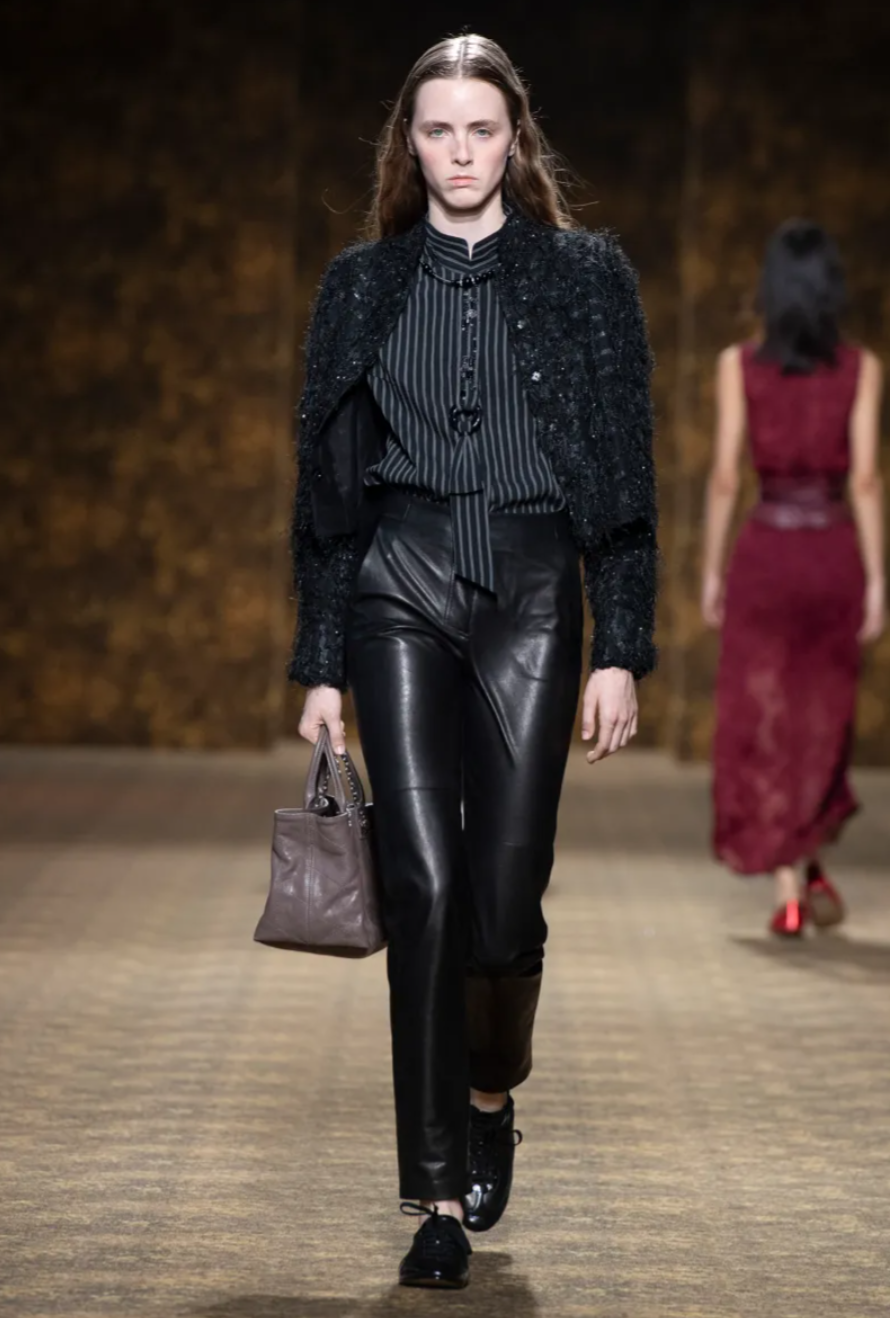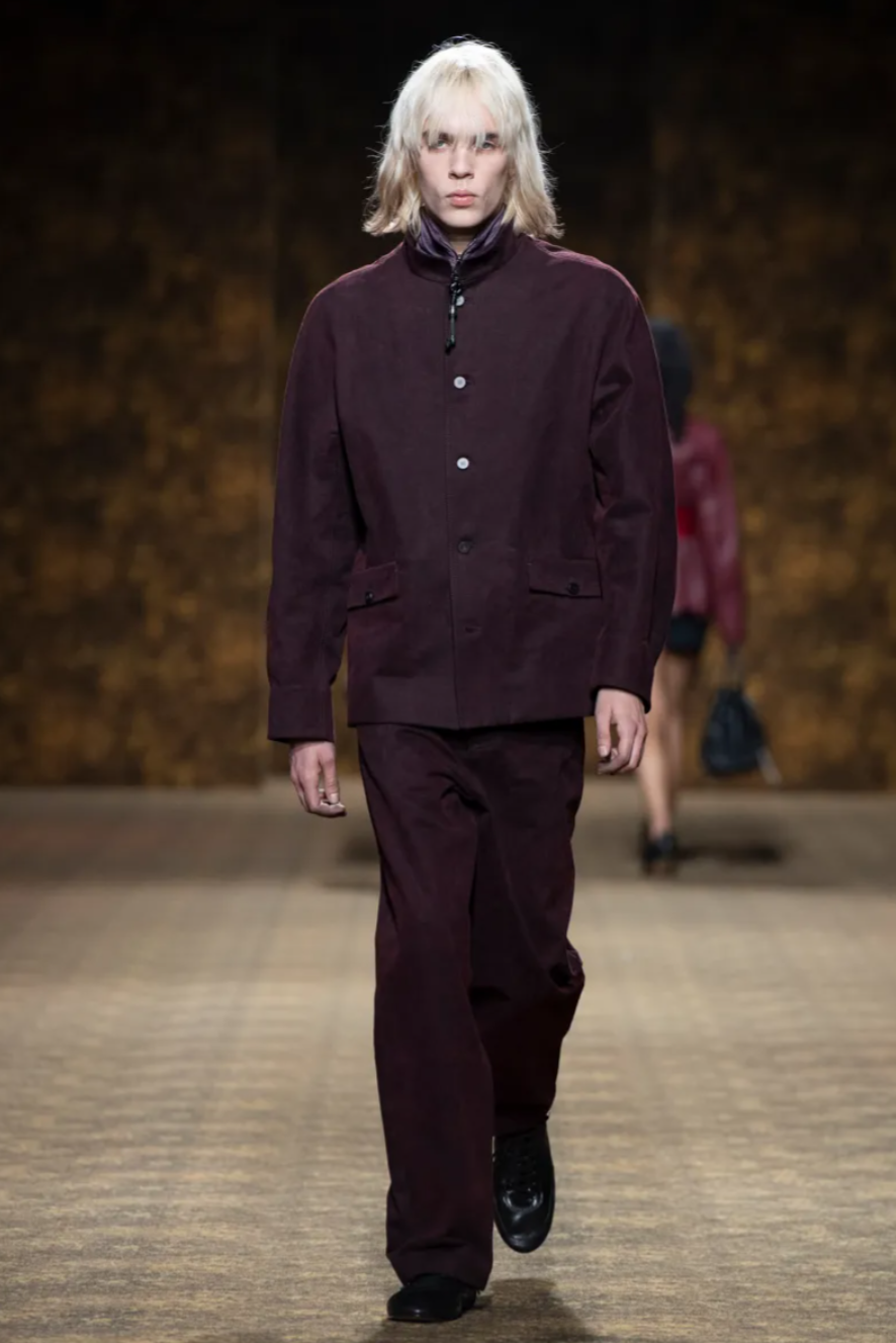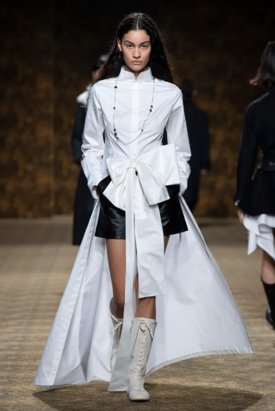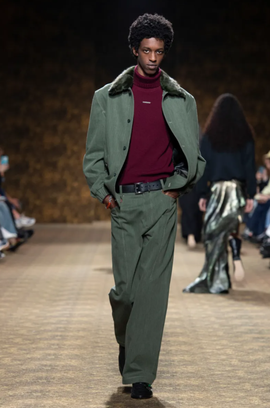 Colour played a central role in the Shiatzy Chen Fall 2026 collection, with shades of orange, jade green and gold evoking imperial richness. Softer combinations of white and green or white and red referenced the celebrated Jadeite Cabbage housed at the National Palace Museum. Jade itself appeared throughout the Shiatzy Chen Fall Winter 2026 lineup as both ornament and symbol, from delicate inlays on brushed denim to donut shaped buckles worn close to the body and jewellery pieces that could shift from necklace to brooch. The result was a Shiatzy Chen Fall 2026 collection that balanced historical opulence with a mineral like clarity, allowing the brand’s refined craftsmanship to shine.