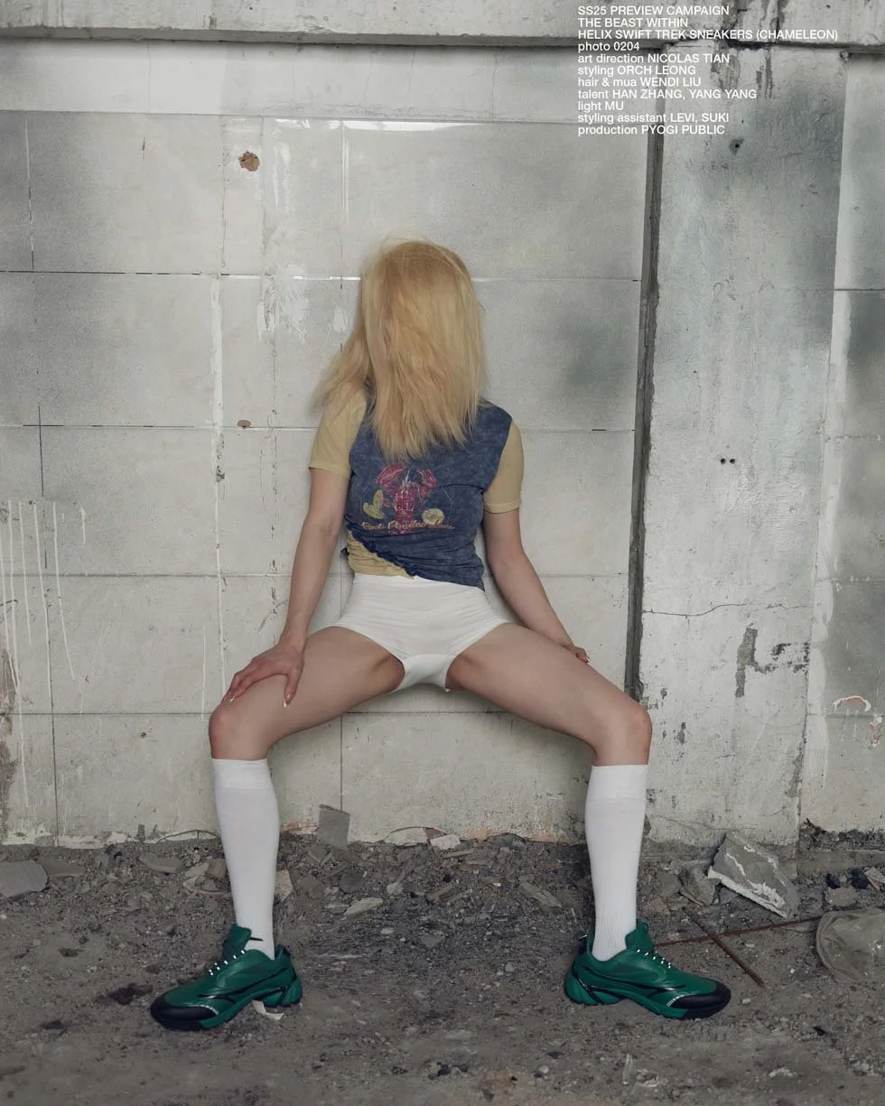Drawing from untitlab®'s adventurous ethos, the SS25 collection immerses itself in themes of exploration and boundary-breaking. With vibrant colours and dynamic shapes, it encapsulates a powerful sense of freedom. This season, we’re pushing the limits of innovative craftsmanship by collaborating with the eco-friendly British wool brand Cloudwool to introduce mule bags and slip-ons, alongside HILOS Studio for fully recyclable 3D-printed shoes. We’re also thrilled to partner with artist *toooomyng for the inflatable rubber Reel Boots, adding an artistic twist to our offerings. In a bold reimagining of formal wear, we’ve integrated sneakers into our new Helix thick-soled racing shoe series and Malar Boots, both made with cutting-edge overall embossing technology. Each piece is designed not just to be worn but to inspire a lifestyle of exploration and creativity.