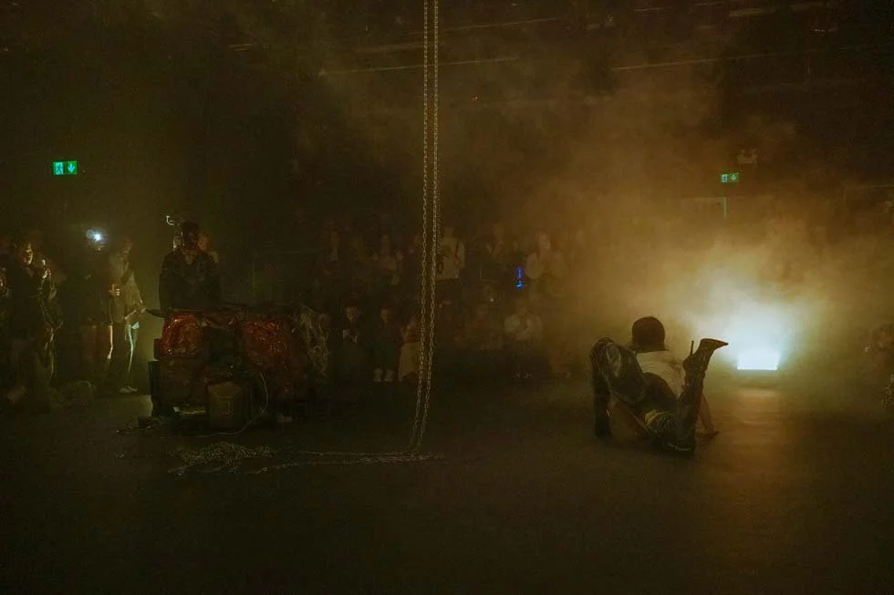 Untitlab® has always been a brand known for pushing boundaries, but their Spring/Summer 2025 performance took the brand to a new level, staging an atmospheric plunge into the depths of human desire and its unrelenting tension with fulfilment. Staged in a dark, fog-filled room with chains suspended from the ceiling and an eerie, ambient soundscape, set the tone for an intense meditation on desire, death, and the rebirth of sensuality—themes Untitlab® explored in both their designs and their storytelling.
