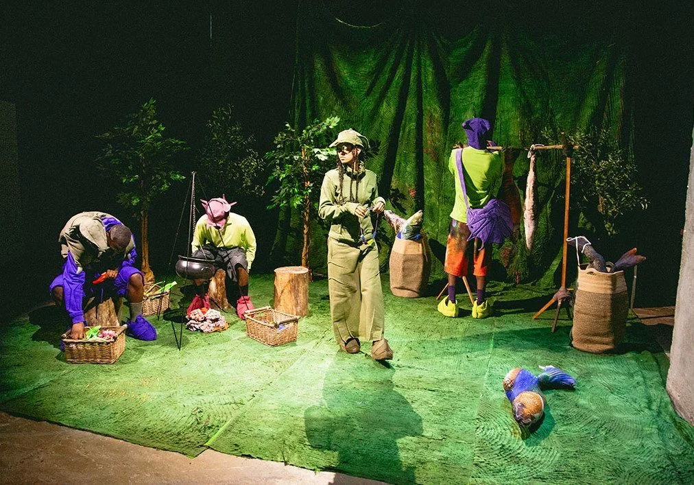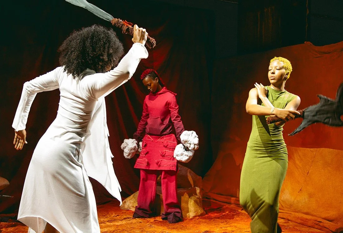 Finally, The Forest provided a moment of quiet strength. Mum, Ricky, and Lorrelle are seen seated among ancient trees, their presence as steady as the roots they sit upon. In this space, sustenance is key; the trio prepares fish together, nourishing both their bodies and spirits for the trials ahead. Yaku uses this tableau to reflect on the cycles of life—survival, continuity, and the need to nurture the collective. The scene is a reminder that growth and endurance are tied to community and care, a sentiment that resonates throughout the entire collection.