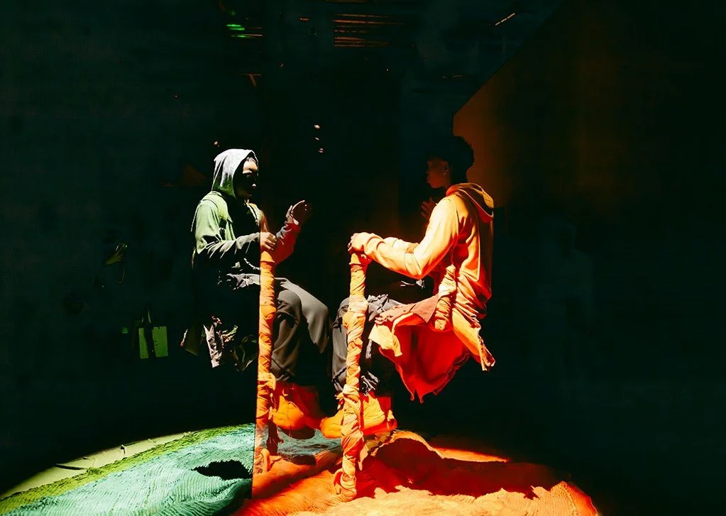 The energy heightens in Combat, where Amir and Nathaniel engage in a dynamic, physical struggle. Their movements are swift, their bond growing stronger with each bout. Here, Yaku uses the concept of combat to symbolize resilience and unity. The fight is not only external but internal, with both characters supporting each other after every skirmish. This tableau captures the essence of camaraderie, where challenges are met with both physical and emotional strength, and the drive to lift each other up becomes paramount.